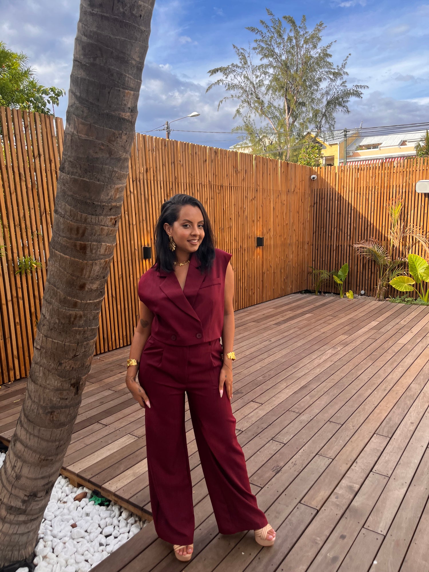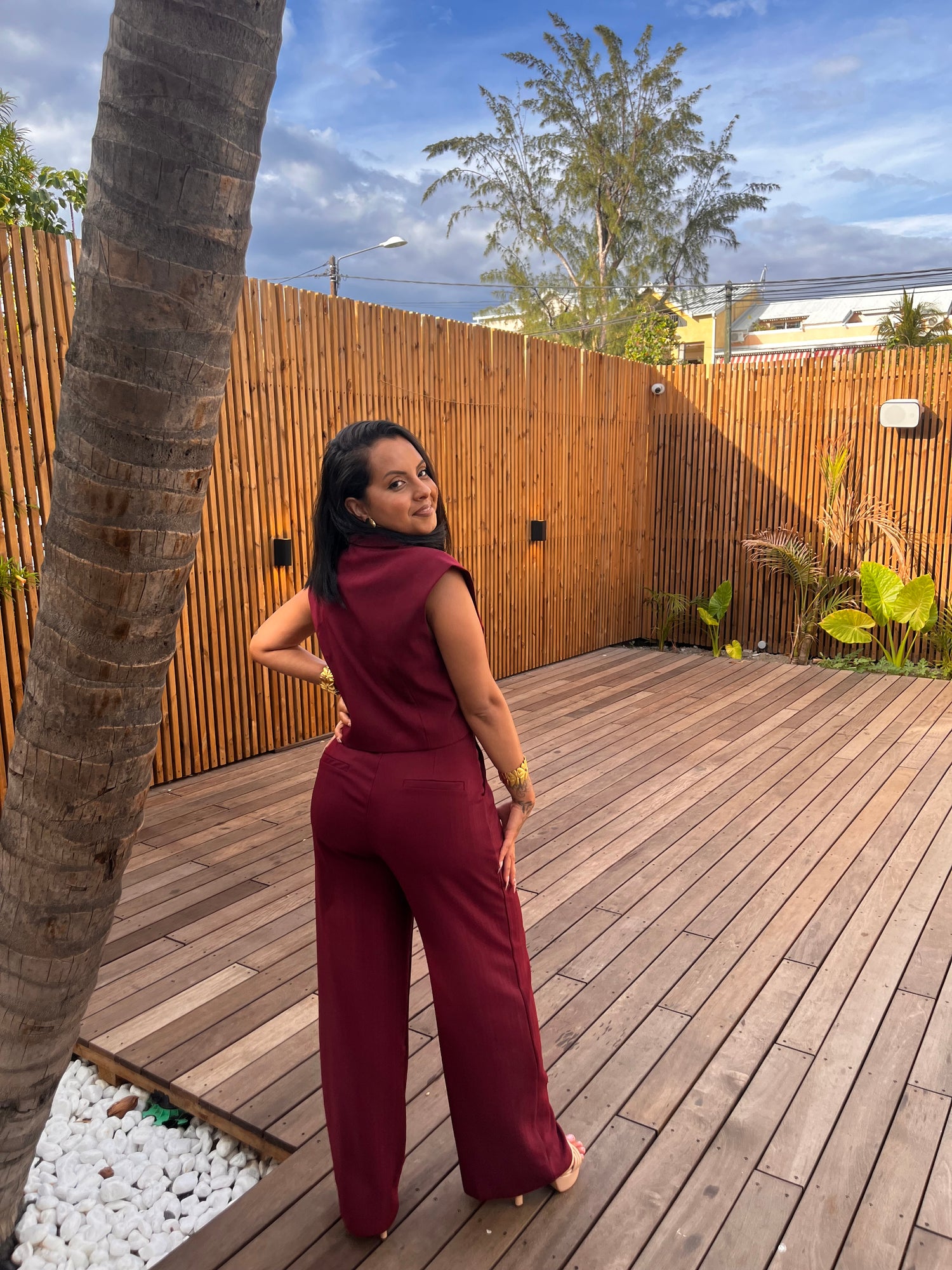 l’ensemble pantalon taille haute tombe parfaitement, fluide et élégant. L’équilibre est juste : moderne, féminin, affirmé.