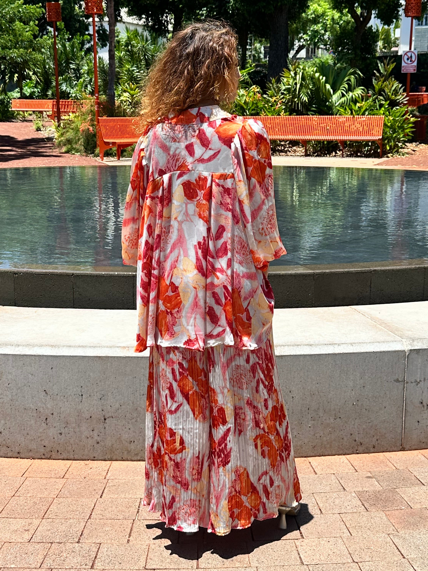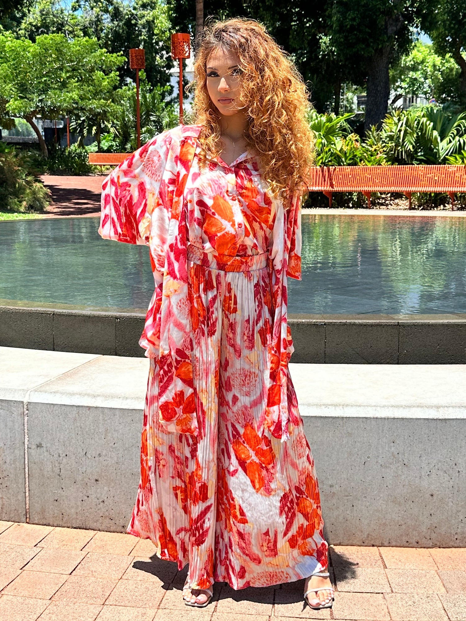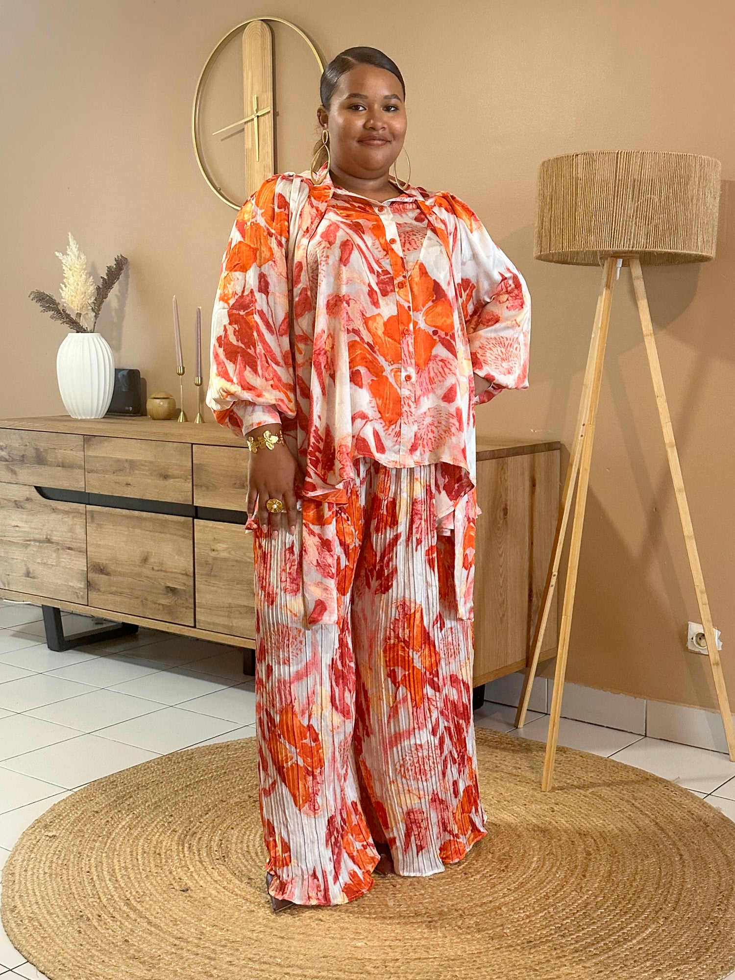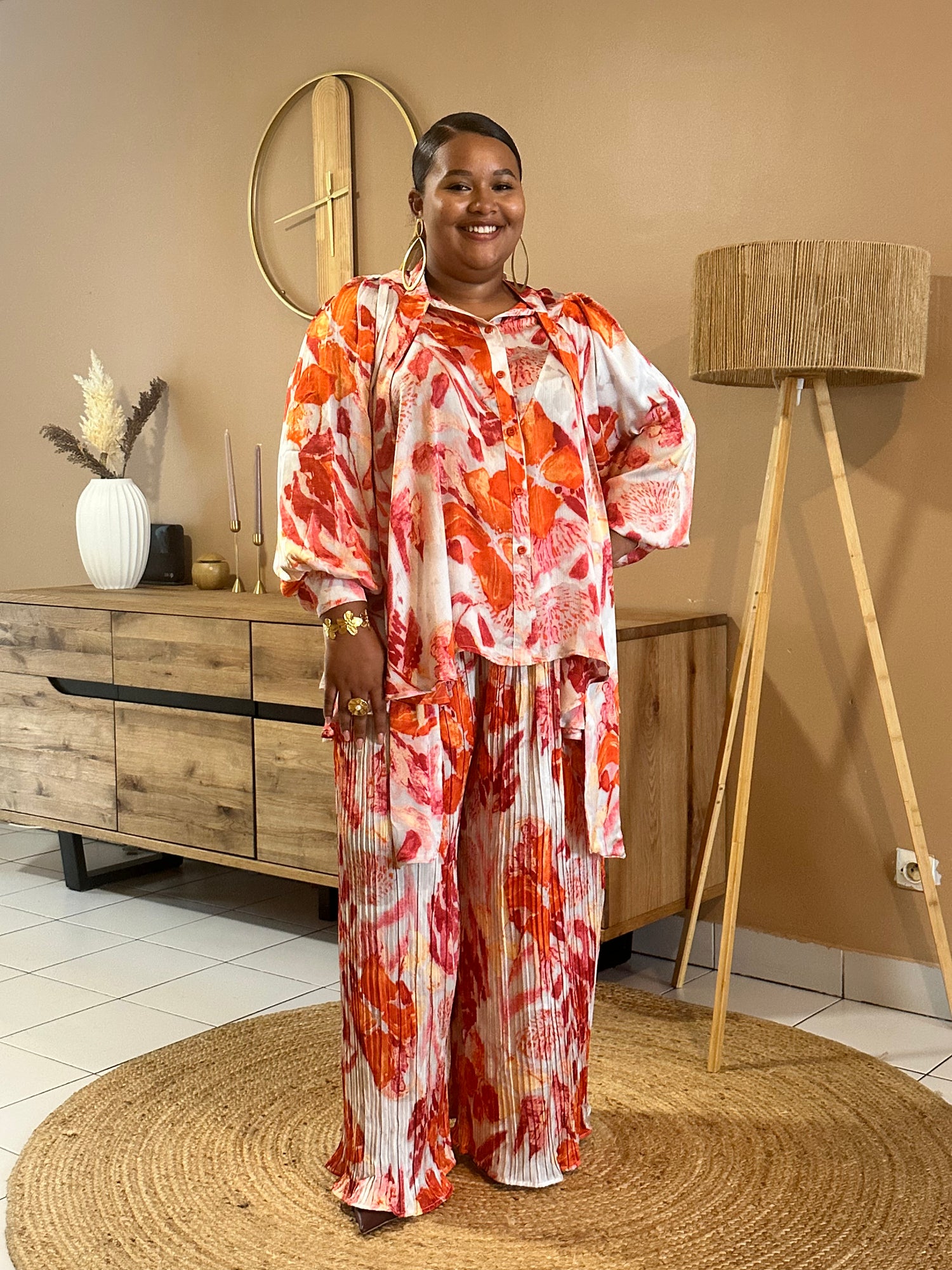 Une explosion de couleurs pour une allure solaire. Cet ensemble célèbre la liberté avec ses motifs vibrants et sa matière fluide qui frôle la peau. Une pièce forte, pensée pour celles qui osent rayonner avec raffinement. Le chic nomade par excellence.