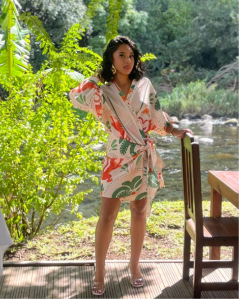 🌸 Imprimé : Un imprimé qui mélange à la fois nature tropicale et fantaisie colorée, parfait pour un look estival, bohème et original