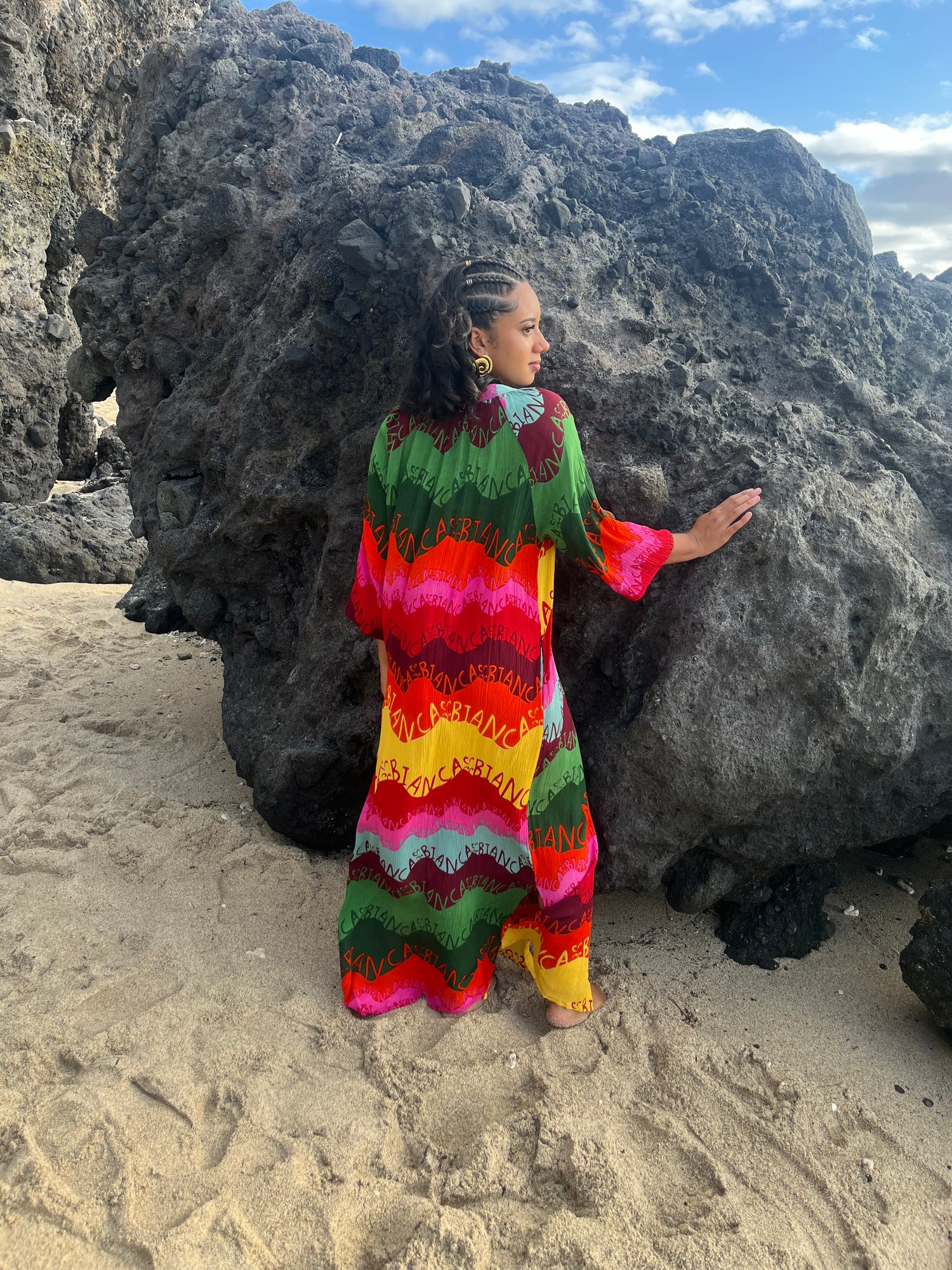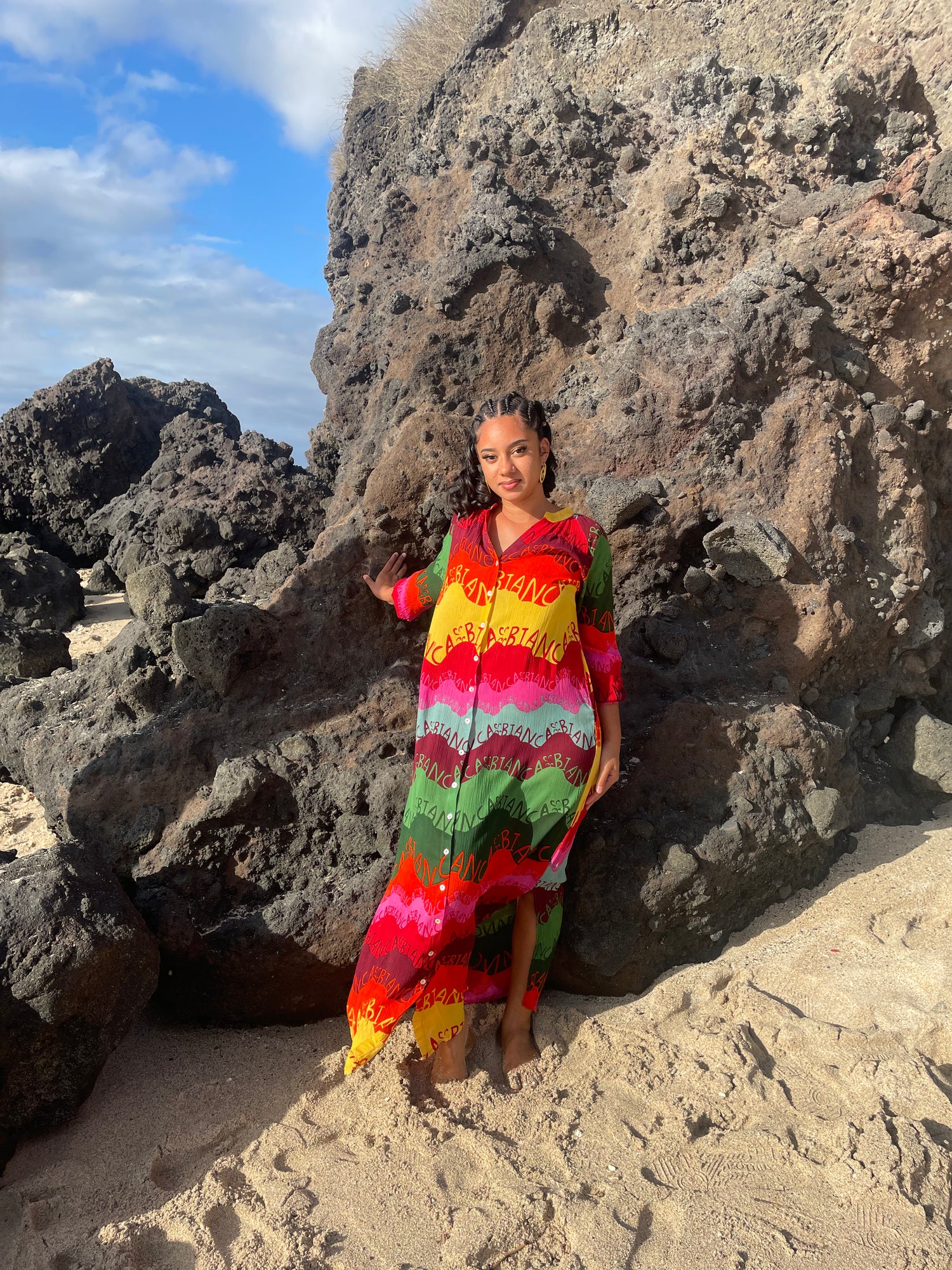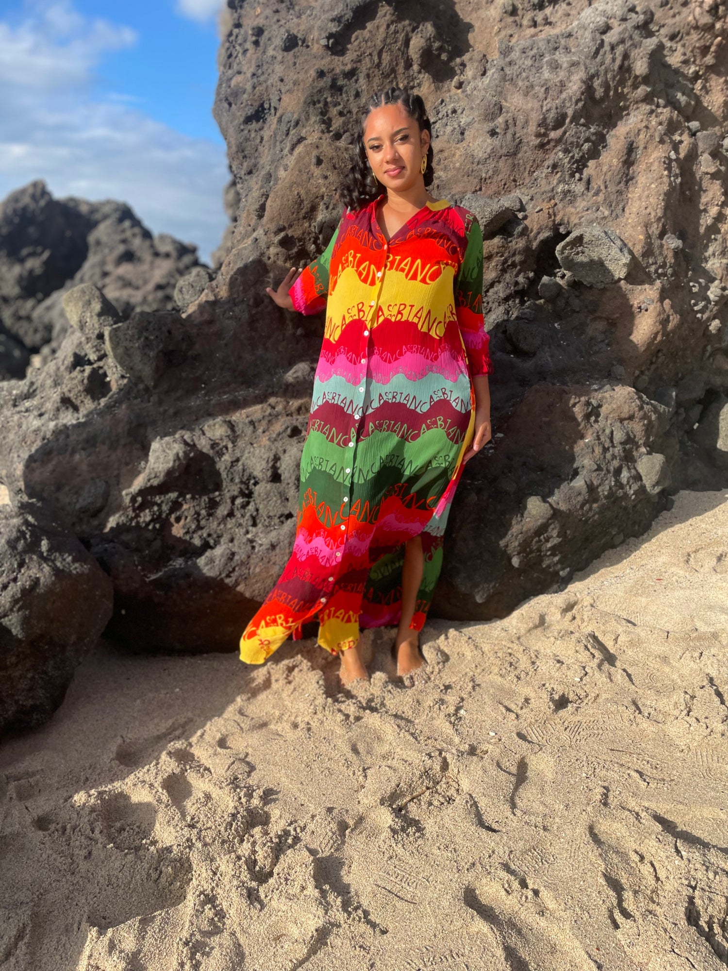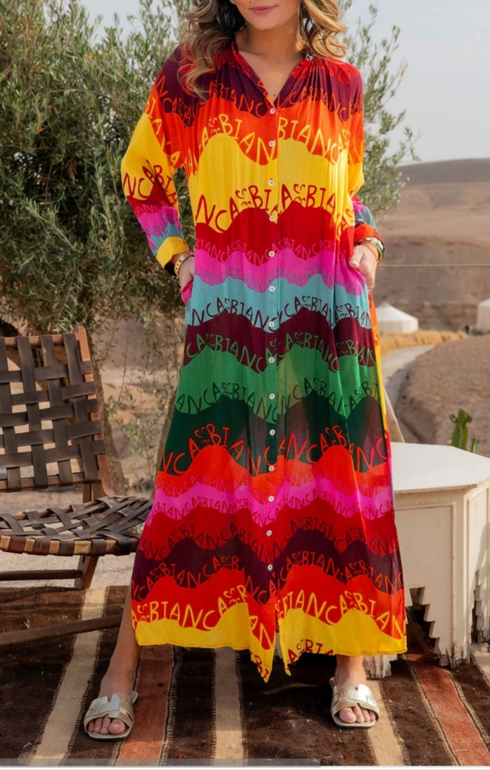 Faites sensation avec cette robe chemise longue à imprimé coloré éclatant. Les motifs ethniques et les couleurs vibrantes captivent le regard, idéals pour les beaux jours ou les occasions spéciales. Un modèle qui allie élégance, originalité et liberté de mouvement.