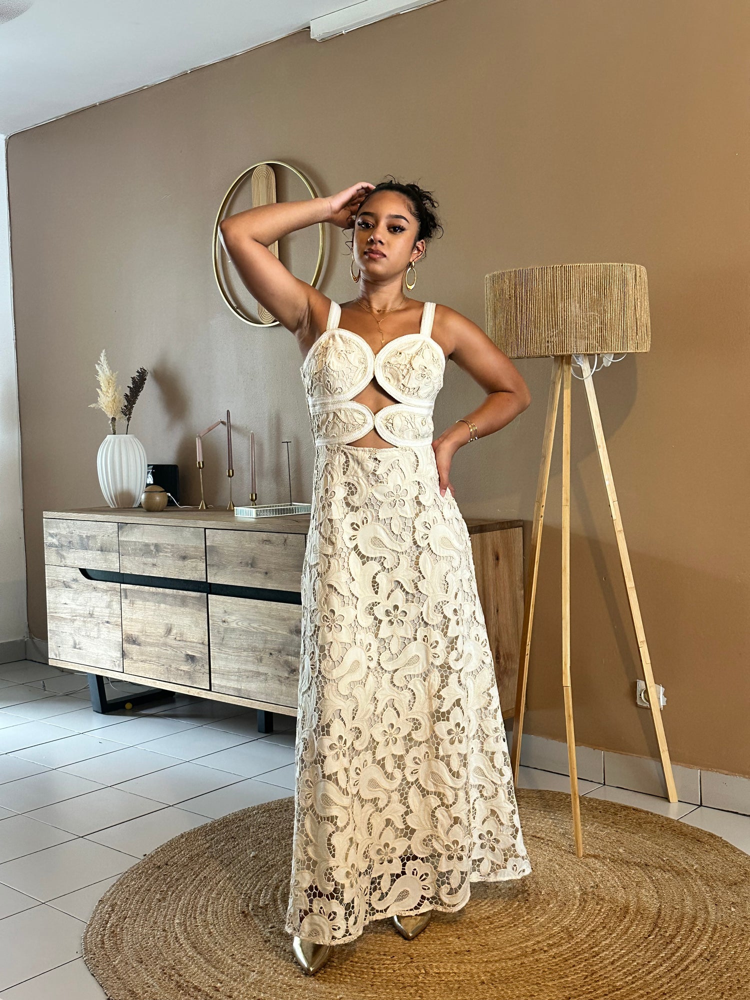 La robe Jessica, c'est comme un bouquet de fleurs qui a décidé de faire la fête ! Avec sa dentelle ajourée et ses broderies fleuries, elle ajoute une touche d'élégance tout en restant chic. Enfilez-la, et préparez-vous à voir des regards s’émerveiller (et peut-être un ou deux cœurs s'envoler) !